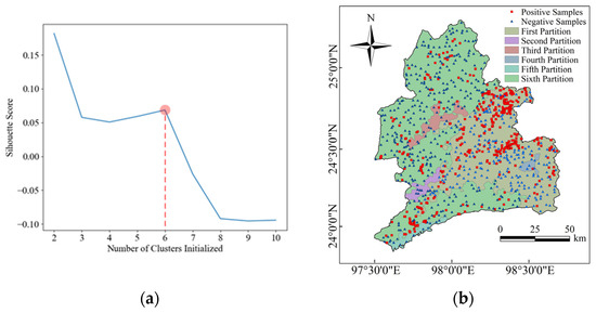 - Spatial partitioning can effectively weaken the impact of spatial heterogeneity on landslide hazard assessment, especially for assessment modeling under the condition of the uneven spatial distribution of positive and negative samples. Compared with the global modeling strategy, the proposed method can obtain more accurate assessment results through different subregions.