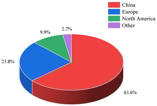 Figure 5 shows the share of the global NEV market in 2022. In 2022, the global total sales of new cars fell by 1%, to only 80.6 million, of which the sales in the United States fell by 8% and the sales in Europe fell by 7%. However, sales in China rose by 2.1% against the trend, partially offsetting the decline in Europe and the United States. The rapid growth in the sales of NEVs made an important contribution to offsetting the decline in car sales. According to the data in the White Paper on the Development of China’s New Energy Automobile Industry (2023), the main contribution of global automobile sales comes from China. In 2022, the global sales of NEVs reached 10.824 million, with a year-on-year increase of 61.6%. The sales of NEVs in China reached 6.884 million, with a global market share of 63.6%. The strong growth of China’s NEVs is inseparable from the support of national policies and the long-term accumulation and construction of the industrial chain. With the further improvement of NEV technology, the improvement of the industrial service system, and the further enhancement of consumer confidence, China’s NEVs will release greater consumption growth potential.