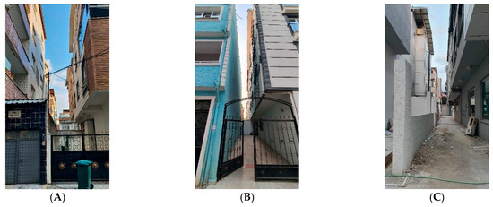 (A–C) Narrow gaps and sunless houses formed by parcel-based renovation and increased height of the housing units (Source: the first author from field survey, 2021).
