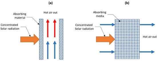 A schematic diagram of a (a) tubular receiver and (b) volumetric receiver.