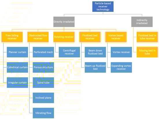 The basic designs of particle receiver technology. Adapted from [93,100].