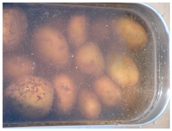 The tuber yield structure was determined on an electric sorter by counting and weighing tubers according to the fractions: <35, 36–50, 51–60, and >60 mm in diameter []. Based on the yield structure, the marketable yield was then calculated by subtracting the weight of tubers with defects and deformations [,].