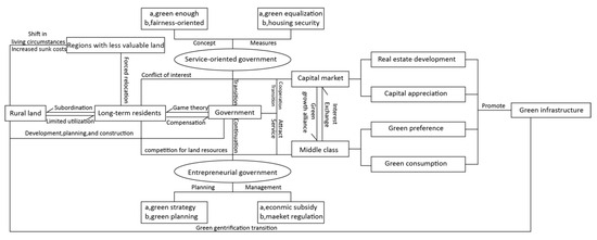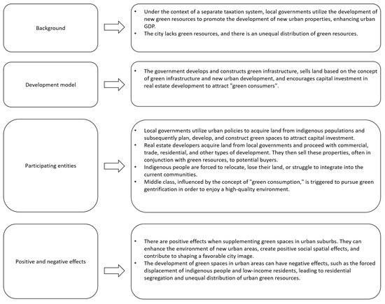 Many new development projects are being constructed on vacant or brownfield sites where there were originally no indigenous communities [38]. However, this does not affect the ultimate outcome of “class displacement”, which is the core essence of gentrification. Green gentrification occurring in new urban areas, although there may be no indigenous presence or a sparse indigenous population in the original site, can still be considered gentrification because class displacement occurs after the construction of new green infrastructure. It is, conceptually, an extension of new-build gentrification [5].