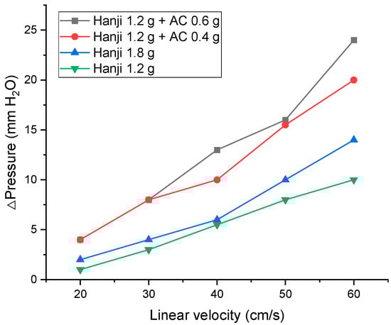 3.2. Pressure Loss Changes According to the Linear Velocity of the AC-Embedded Hanji Filter