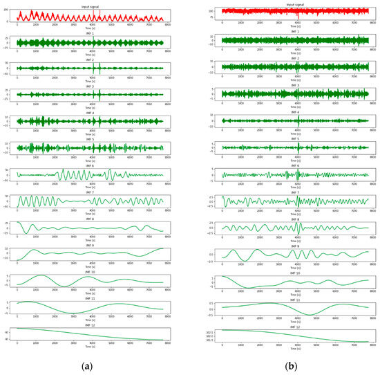 - Rilling, G.; Flandrin, P.; Goncalves, P. On empirical mode decomposition and its algorithms. In Proceedings of the IEEE-EURASIP Workshop on Nonlinear Signal and Image Processing, Grado IEEE, Antalya, Turkey, 20–23 June 2003; Volume 3, pp. 8–11. [Google Scholar]