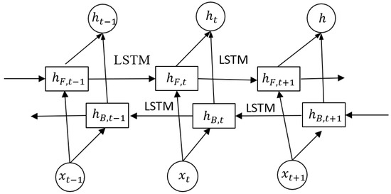 where represents activation function; represents bias value; and represent weight matrices for the hidden layers of the forward and backward LSTM models, respectively.