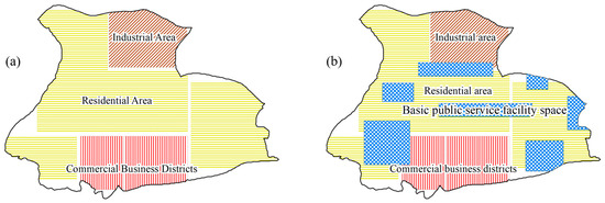 The configuration of basic public service facilities can improve the functional isolation of urban space: (a) before configuration; (b) after configuration.