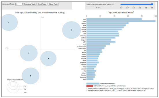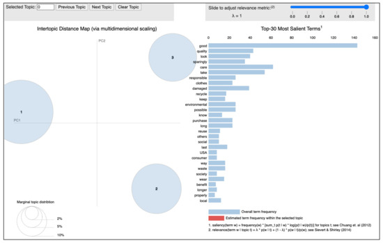 Intertopic distance map (IDM) of LDA topic modeling—acquisition [30,31].