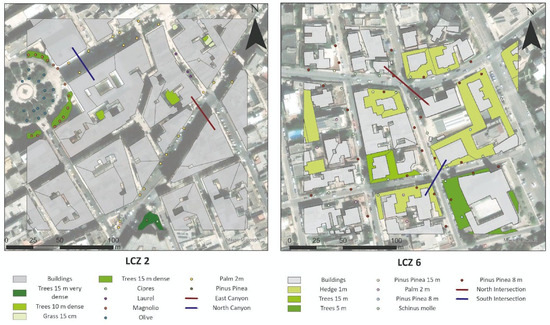 Canyons selected in LCZ 2 and LCZ 6 for further analysis.