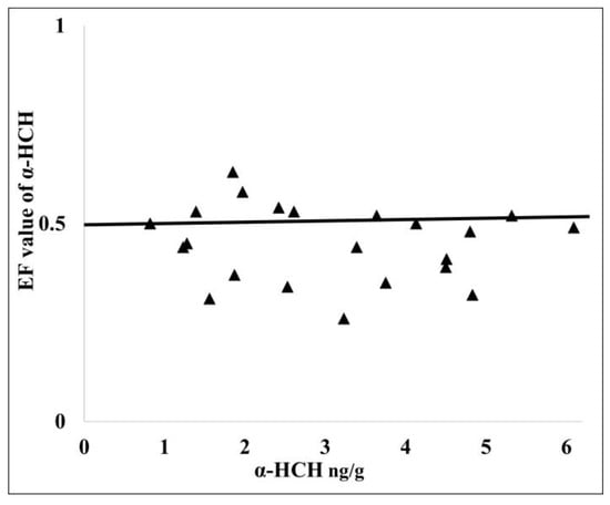 The cross plot of α−HCH concentration versus calculated α-HCH EF of the mixture.