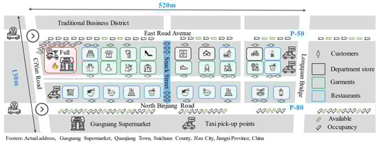 The scenario studied in this paper is a TBD. It is characterized by a long-established street with small shops arranged along it. In the face of the overall decline of the TBD, only a few shops are able to retain customers, while the rest are facing a survival crisis. Thus, the parking spots of the shops have reached a cooperative agreement and agreed to share parking, establishing a unified parking fee standard for the entire TBD. The shops also offer additional coupons to customers who park their cars at other shops. This business model is referred to as “PSC” in this paper.