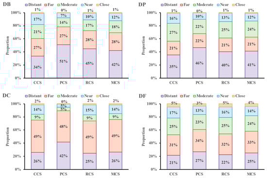 In Scenario 2, there are significant differences among the four classes in their choices between distant walking distances and near distances, while the differences in choices for other walking distances are not significant. PCS prefers distant walking distances in exchange for greater coupons, while CCS, on the other hand, prefers near walking distances. However, there is no significant difference between RCS and MCS. Both classes show a preference for using consumption coupons and parking coupons to attract them to park at locations within walking distance.