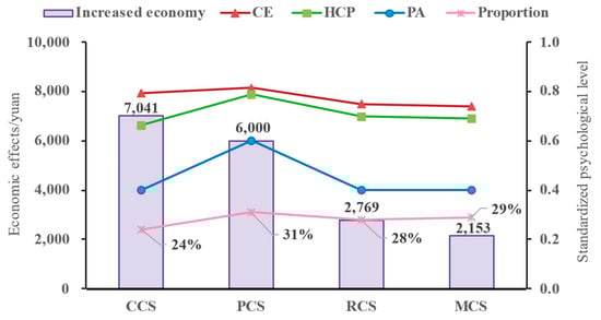(3) Under the quantification equation of CE, the economic effects brought by the four classes are as follows: ¥7041, ¥6000, ¥2769, and ¥2153. Compared to the before PSC, the level of economic improvement is 9%, 12%, 8%, and 10%. It can be observed that PCS exhibits the highest economic impact.