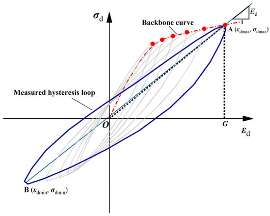 Figure 2 shows the typical hysteresis loop (stress–strain curve) of soils subjected to cyclic loads. The backbone curve is defined as the line connecting peaks of the hysteresis curves for different load amplitudes, the dynamic elastic modulus (Ed) is equal to the slope of the line joining the vertices of the hysteresis curves, and the cyclic shear modulus (Gd) is obtained by indirect calculation of the elastic modulus: