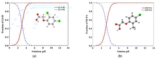 Chemical structure and distribution of species of (a) 2,4-D and (b) MCPA [].