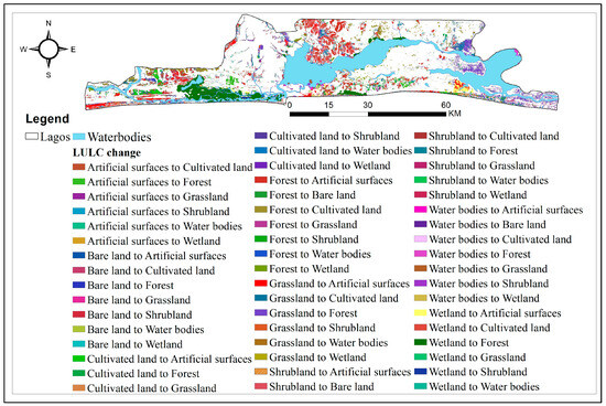 - Adepoju, M.O.; Millington, A.C.; Tansey, K.T. Land use/land cover change detection in metropolitan lagos (Nigeria): 1984–2002. In Proceedings of the ASPRS 2006 Annual Conference, Reno, NV, USA, 1–5 May 2006; pp. 1–7. [Google Scholar]