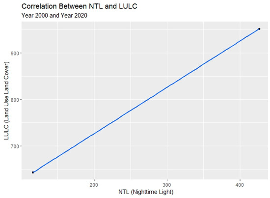 NTL data and land-use data are distinct but complementary datasets used in urban and environmental analysis. Nighttime light data, often derived from satellite imagery, capture the artificial illumination present during the night, offering insights into the spatial distribution and intensity of anthropological activities [17,29]. On the other hand, land-use data categorize the different types of activities or covers on the Earth’s surface, such as residential, commercial, industrial, or green spaces. Integrating nighttime light data with land-use data enhances our understanding of urban dynamics, allowing researchers and policymakers to examine the patterns of development, identify areas of high human activity, and make informed decisions about urban planning, resource allocation, and sustainable growth strategies [17,29]. The outcomes of the current study demonstrate a strong correlation between changes in nighttime brightness and particular types of land-use transitions at the individual pixel level (Figure 13).