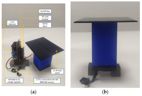 The IoT tensiometer prototype: (a) The components; (b) the sealed prototype [33].