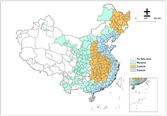 Considering the consistency and availability of data, we selected 285 prefecture-level and above cities in China as observed samples in this study, covering the period 2003–2019. To further identify the regional characteristics of GIE, we divided these 285 cities into three regions, namely Eastern, Central, and Western (Figure 1).