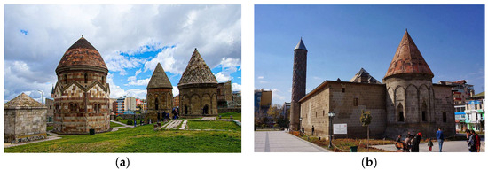 Erzurum is a historical and cultural city located in the Eastern Anatolia Region of Turkey. Erzurum’s history dates back thousands of years and has been home to various civilizations. The city attracts attention with both its historical richness and cultural heritage. Erzurum has been an important center of trade and cultural interaction since ancient times due to its location on the historical Silk Road. Many different civilizations such as the Urartians, Persians, Romans, Byzantines, Seljuks, Mongols, and Ottomans ruled in Erzurum. In addition, the city has many historical mosques, madrasas, and külliye under the influence of Islamic civilization [35]. Seljuk monuments in Erzurum are among the structures that enrich the cultural heritage of the region and offer important examples of Turkish–Islamic art. These works are of great historical and artistic importance. The complexes and tombs of the Seljuk period in Erzurum bear important traces of religious, cultural, and social life. These complexes include many buildings such as mosques, madrasahs, mausoleums, tombs, and fountains, and they reflect the culture of the Seljuk period, creating an identity unique to the region.