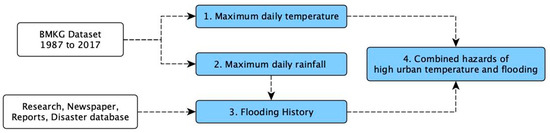 People in some areas of Jakarta are already impacted by high urban temperatures and flooding. For an area affected by both hazards, people would experience a high urban temperature during the dry season, particularly those who are living in a built-up environment. On the other hand, they can be exposed to flooding during the rainy season. The combined hazards of high urban temperature and flooding are also observed in some other cities, such as Bangkok [96].
