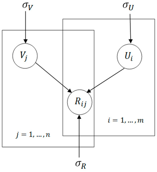 where represents Gaussian distribution. is the index function. If the user scores the item , its value is 1; otherwise, the value is 0.