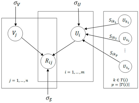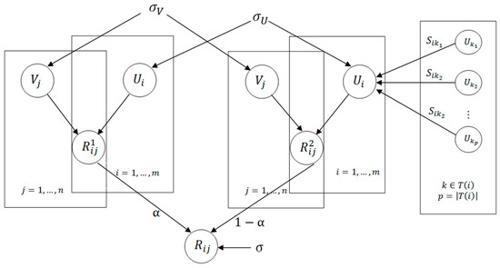 where , represents a set of users with relationship with user , and represents a set of users with relationship with user . To reduce the complexity of the model, it is assumed that .