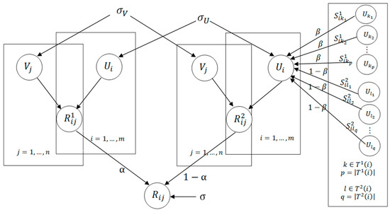 where is an adjustable parameter; it is used to adjust the proportion of the user’s historical scoring data and the influence of social relationships between users. The recommended algorithm diagram of the PMFS1 model is shown in Figure 4.