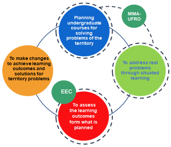 At the beginning of each academic semester, a call was made to the different professors of the mandatory subjects of the Faculty of Engineering and Sciences to participate in the EECs. Once the issues were confirmed, the UFRO and the MMA analyzed and discussed the learning opportunities to be addressed that were inherent to the professional profile and consistent with the environmental problems of the municipalities in the Araucanía region [