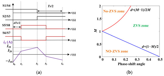 The timing diagram and ZVS range of DAB under SPS control: (a) timing diagram and (b) ZVS range.