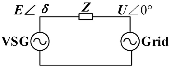 Figure 5 shows the equivalent circuit of the VSG connected to the grid, where Z is the VSG output impedance, as shown in Equation (16).