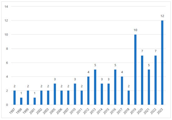 Therefore, it is crucial for instructional designers and researchers in related fields to thoroughly review and follow the procedures of previous needs assessment studies that have been properly implemented to develop effective curricula or training programs. Unfortunately, locating previous studies from the past several decades that offer useful insights into practical guidelines and research trends in learning needs assessment has been challenging. Considering these challenges, it is very important to systematically analyze and reflect upon existing needs assessment studies published in prominent international journals since the 1990s to understand the status of such studies and advance related knowledge within the discipline. The reason for choosing a review period after the 1990s is that studies related to training or learning needs assessments began to be published mostly after the 1990s []. After reviewing articles pertinent to the study, it was determined that only papers published post-1997 met the search criteria. These criteria encompassed aspects such as paper type, the incorporation of empirical data, and topical relevance. Consequently, the review period for this study spans from 1997 to 2023.