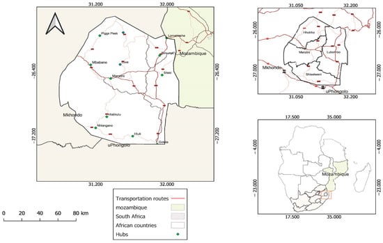 Eswatini, being a landlocked nation, relies on its regional neighbors for most of its supplies. The transportation of goods from Mozambique to Eswatini is facilitated through regional routes connecting the Maputo Port to various destinations (distribution) within Eswatini. Similarly, humanitarian relief originating outside the two neighboring countries reaches Eswatini through key entry points, such as the Johannesburg International Airport (the largest airport in the region), Durban Port (the largest seaport in Africa), or Richards Bay Seaport. Cities housing these ports and towns near the Eswatini border are designated as hubs. Alongside regional routes, local roads link central distribution centers to local distribution centers (tertiary hubs) and support last-mile distribution.