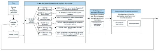 Semantic analysis is a method that has proven efficacious in orchestrating the influx of incoming data. To operationalise this approach, it is imperative to first delineate the pivotal concepts and nomenclature germane to the subject domain. This was conducted by interfacing classifiers and internationally recognised rubricators that have garnered consensus within the scientific and technical communities. The prescribed classifiers are used to scrutinise fresh publications within the aerospace sector, with the objective of elucidating salient concepts and terminologies and discerning scholarly trajectories to encapsulate the contemporary landscape of the industry. This not only befits the economy of time and effort but also furnishes a means of vigilantly monitoring consequential intelligence. Figure 2 provides a comprehensive schematic representation for elucidation.