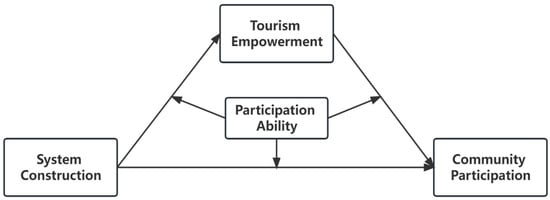 All of the abovementioned studies underscore the pivotal role of institutional elements in promoting community participation. Therefore, commencing from the perspective of community participation and tourism empowerment, this paper employs a quantitative structural equation model to analyze the influence mechanism of system construction on community participation, along with community empowerment’s mediating role and participation ability’s regulating role in the model, which aims at unveiling the factors that enhance the level of involvement within rural tourism communities in China and exploring effective ways to promote the sustainable development of rural tourism.
