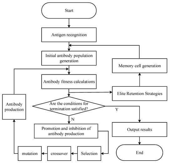 After generating the initial antibody population, the diversity of solutions is evaluated using the expected reproduction probability as the criterion. The higher the expected reproduction probability of the antibody, the stronger the adaptive ability of the antibody. Throughout the algorithmic search process, antibodies with strong adaptive abilities are retained in the memory bank. Under the effect of immune balance, both individuals with high adaptive abilities and those with higher concentrations are promoted and suppressed. This mechanism enhances the diversity of individuals in the population.