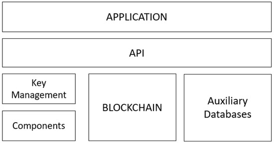 In Figure 7, refs. [47,48,49] show a reference architecture for a software system where the blockchain is one of the main components, explaining that, as a component, blockchain has unique properties and limitations, providing data storage, computing services, and communication services at the same time.