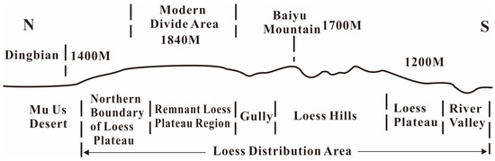 Diagram illustrating the north–south topographic changes in the Loess Plateau.
