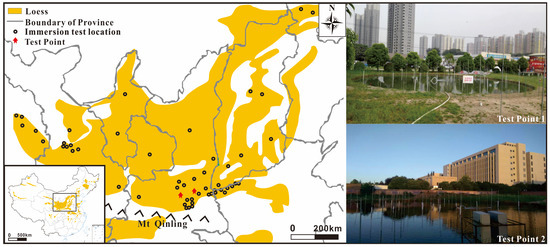 - Wang, Z.; Pan, J.; Ma, Y.; You, L. Immersion Test on the Self-Weight Collapsible Loess in the Dongzhiyuan Area. Hydrogeol. Eng. Geol. 2016, 43, 75–82. (In Chinese) [Google Scholar] [CrossRef]