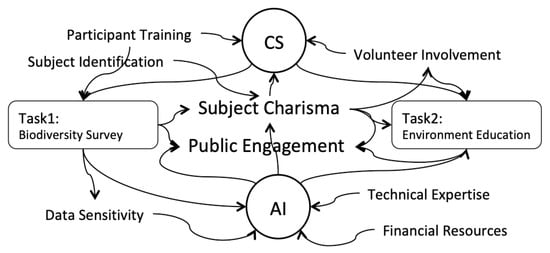 AI has been employed to augment and enhance human understanding of the environment, including perceptions of citizen scientists [41]. While CS and AI are often viewed as separate tools for ecological monitoring, recent studies indicate that a symbiotic relationship between human intelligence and AI, termed hybrid intelligence (HI) [42,43], can strategically unite the two, enhancing outcomes for conservation activities. By pairing the public engagement benefits of CS projects with the sophisticated analytical prowess of AI, there is the potential to foster greater multi-stakeholder consensus on matters of public [44] and scientific importance. Moreover, the integration of both methodologies can expedite data collection and processing relative to traditional scientific approaches, indicating a promising avenue for accelerated monitoring and conservation efforts [45].