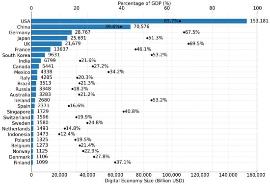 Digital economy size and its share of GDP in various countries, 2021. Data source: China Academy of Information and Communications Technology, 2022 [4].