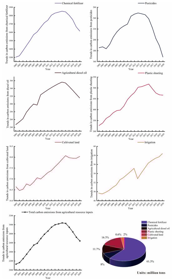 Trends and proportions of emissions from various emission sources in agricultural inputs.