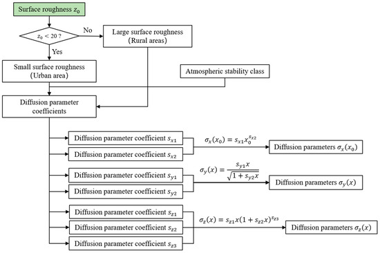 The diffusion parameter coefficients can be determined based on the gas stability level and the surface roughness, as illustrated in Table 2. Using these coefficients, the diffusion parameters can be calculated. The calculation process is outlined in Figure 3.