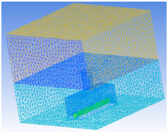 Import the geometric model into the ICME-CFDs software (v.2021R1) for mesh generation. The mesh division of the model directly affects the convergence of simulation results and the computational time. If the mesh is too sparse, it may lead to computational failure, while a mesh too dense will increase the computational difficulty. Generally, considering the significant changes in the flow field near the leak point, a finer mesh is used, while a sparser mesh is used away from the leak point where the pressure gradient is smaller. According to the division results from the ICEM-CFDs software, there are a total of 281,075 mesh cells and 48,002 nodes, as shown in Figure 6.