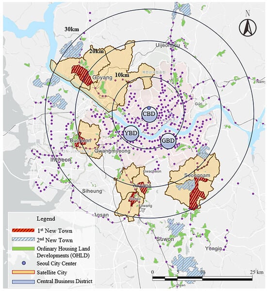 - Vongpraseuth, T.; Seong, E.Y.; Shin, S.; Kim, S.H.; Choi, C.G. Hope and Reality of New Towns under Greenbelt Regulation: The Case of Self-Containment or Transit-Oriented Metropolises of the First-Generation New Towns in the Seoul Metropolitan Area, South Korea. Cities 2020, 102, 102699. [Google Scholar] [CrossRef]