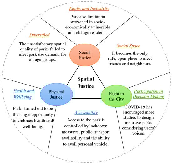 Spatial justice and its implications on urban parks in the post-COVID-19 era; modified from [50].