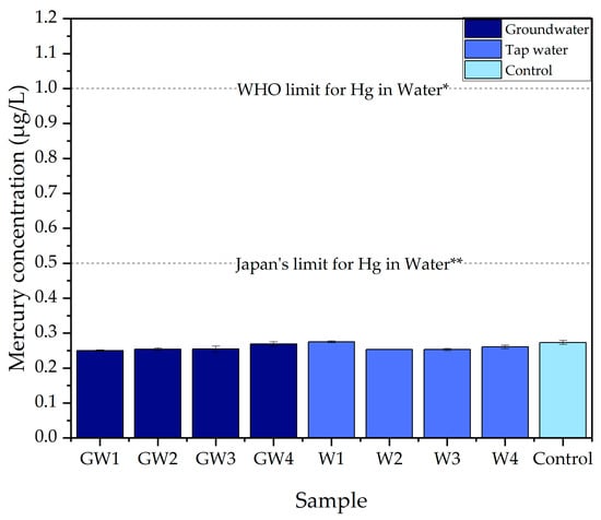 The analysis of total mercury concentration in water samples followed the standardized procedure outlined in method no. 245.1 of the United States Environmental Protection Agency (USEPA) [35]. The samples were analyzed using a Mercury Analyzer (MA-3000) by Nippon Instruments Corporation, Tokyo, Japan.