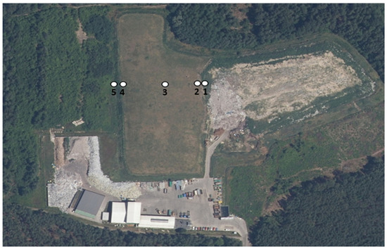 Sampling locations 1 and 5: locations outside the reclaimed landfill area; 2, 3, 4: sites within the reclaimed landfill area.