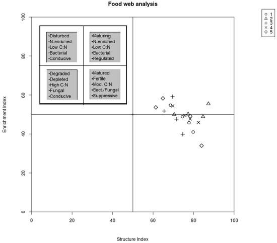 - Ferris, H.; Bongers, T.; de Goede, R. A Framework for Soil Food Web Diagnostics: Extension of the Nematode Faunal Analysis Concept. Appl. Soil Ecol. 2001, 18, 13–29. [Google Scholar] [CrossRef]