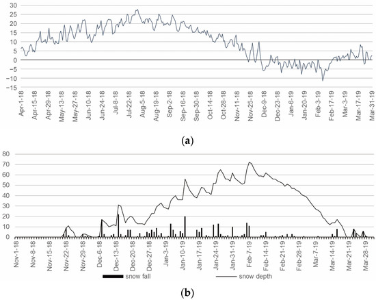 Winter climate in Sapporo: (a) temperatures during the winter; (b) snow conditions during the winter.